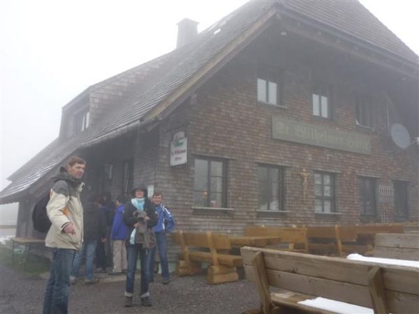 völlig ohne nasse Socken). Dann gingen alle weiter zum Ziel, der W...........hütte. Diese lag bereits total im Nebel, was Keinen wirklich störte, denn nach einer Wanderung freut man sich ja auf eine ausgiebige Rast mit Snack.